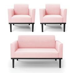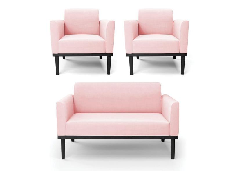 Sofá Namoradeira Com 2 Poltronas Base De Madeira Fixa Preto Marisa Suede D03 - D'Rossi Rosa Bebê
