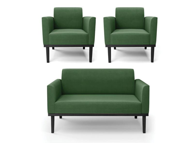 Sofá Namoradeira Com 2 Poltronas Base De Madeira Fixa Preto Marisa Suede D03 - D'Rossi Verde