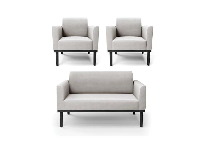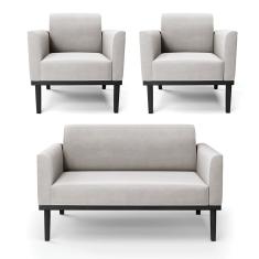 Sofá Namoradeira com 2 Poltronas Base de Madeira Fixa Preto Marisa Veludo Cinza D03 - D'Rossi