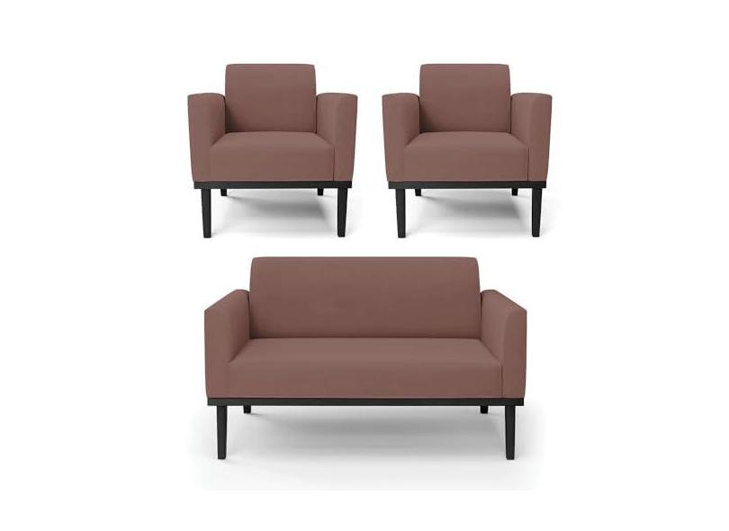 Sofá Namoradeira com 2 Poltronas Base de Madeira Fixa Preto Marisa Veludo Rosê D03 - D'Rossi