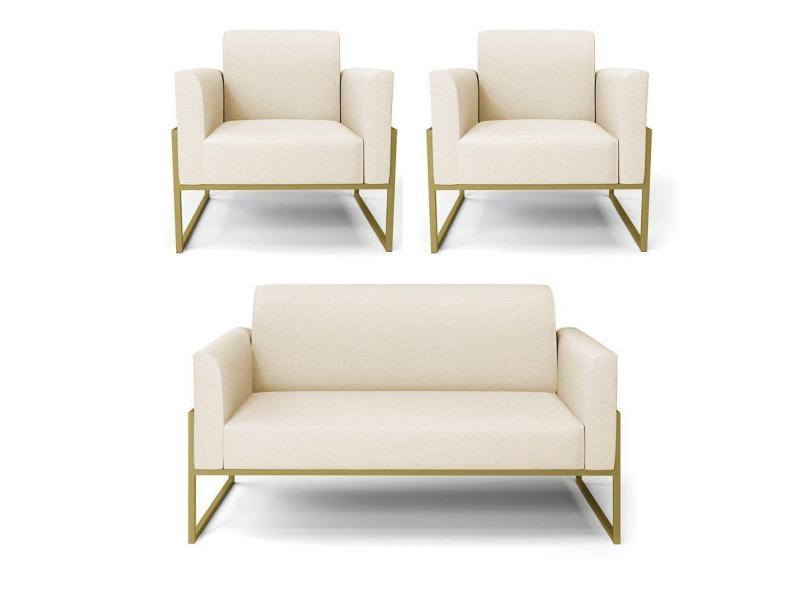 O menor preço encontrado no Brasil para Sofá Namoradeira Com 2 Poltronas Base Industrial Alta Dourado Marisa Linho D03 - D\`rossi Cor A19 Bege atualmente é R$ 2.049,43.