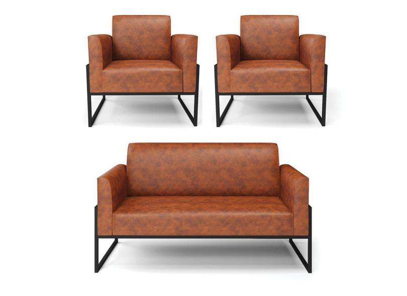 Sofá Namoradeira com 2 Poltronas Base Industrial Alta Preto Marisa Corano Nozes D03 - D`Rossi