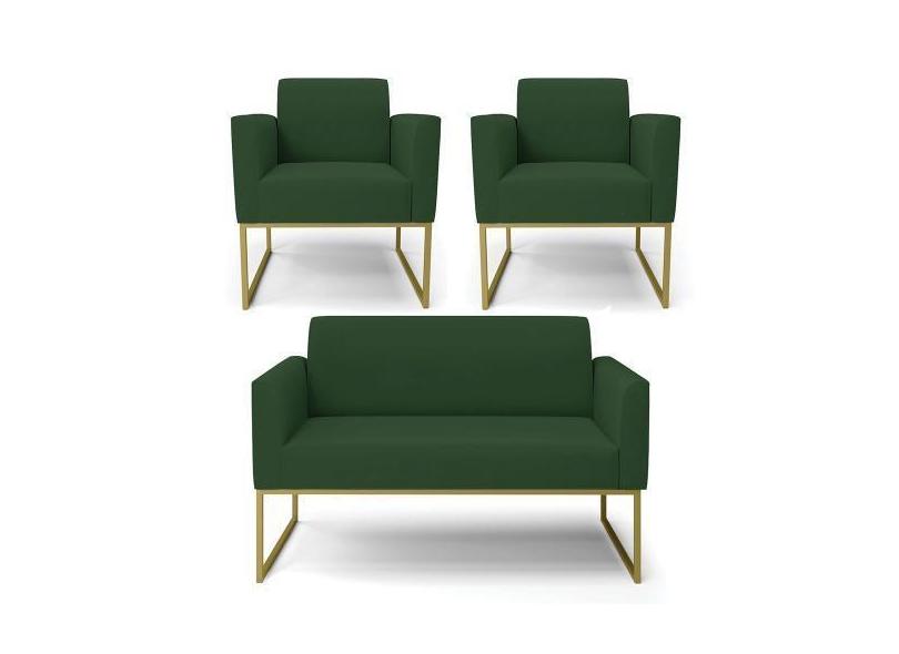 O menor preço encontrado no Brasil para Sofá Namoradeira com 2 Poltronas Base Industrial Dourado Marisa Veludo atualmente é R$ 2.002,85.