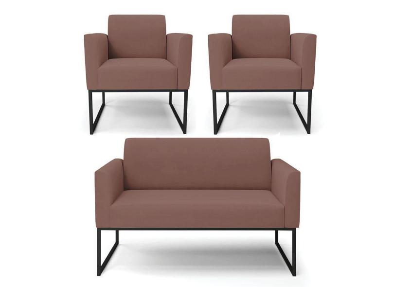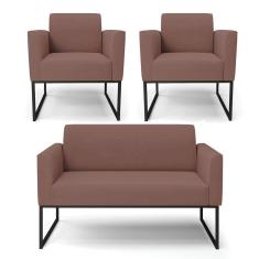 Sofá Namoradeira Com 2 Poltronas Base Industrial Preto Marisa Veludo Rosê D03 - D`rossi