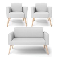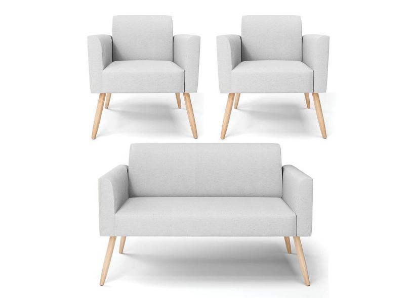 Sofá Namoradeira Com 2 Poltronas Pés Palito Natural Marisa Linho Cinza A05 D03 - D'rossi