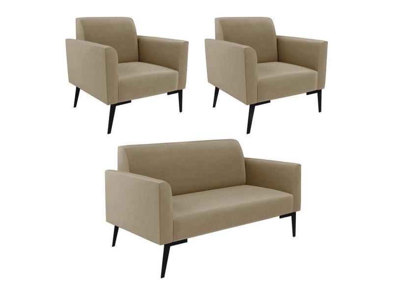 Sofá Namoradeira Com 2 Poltronas Pés Villach Marisa Suede Marrom Rato D03 - D'rossi