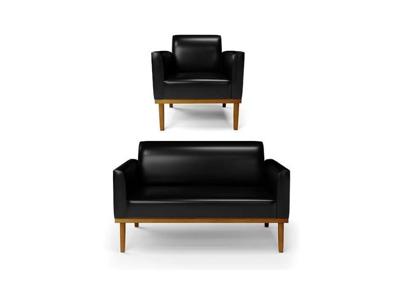 Sofá Namoradeira com Poltrona Base de Madeira Fixa Castanho Marisa Corano Preto - D'Rossi