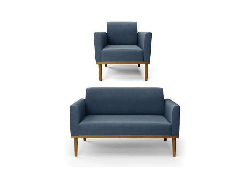 Sofá Namoradeira com Poltrona Base de Madeira Fixa Castanho Marisa Suede - D'Rossi