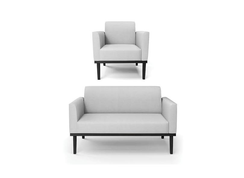 Sofá Namoradeira com Poltrona Base de Madeira Fixa Preto Marisa Linho Cinza A05 D03 - D'Rossi