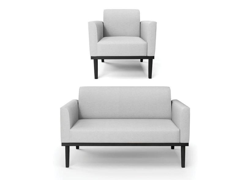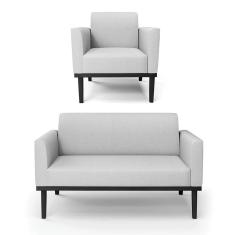Sofá Namoradeira Com Poltrona Base De Madeira Fixa Preto Marisa Linho D03 - D`Rossi A05 Cinza