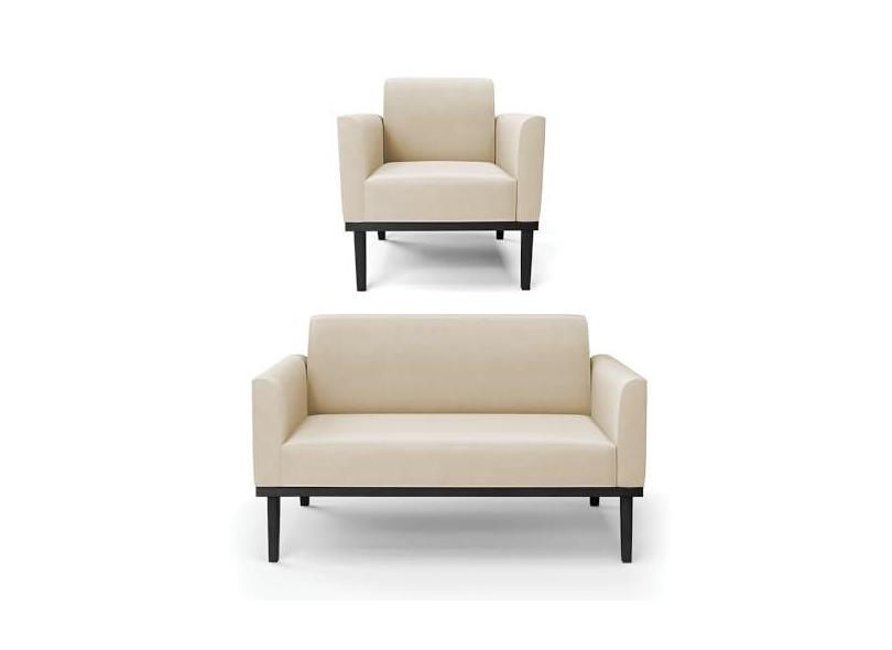 Sofá Namoradeira com Poltrona Base de Madeira Fixa Preto Marisa Suede - D'Rossi