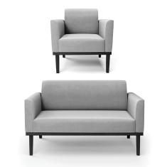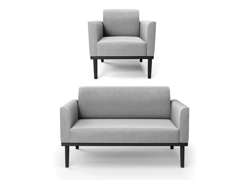 Sofá Namoradeira Com Poltrona Base De Madeira Fixa Preto Marisa Suede D03 - D'Rossi Cinza