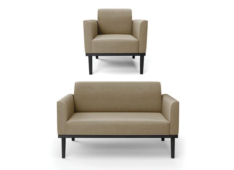 Sofá Namoradeira Com Poltrona Base De Madeira Fixa Preto Marisa Suede D03 - D'Rossi Marrom Rato
