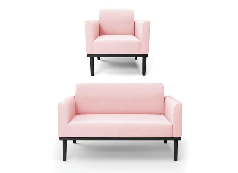 Sofá Namoradeira Com Poltrona Base De Madeira Fixa Preto Marisa Suede Rosa Bebê D03 - D'Rossi