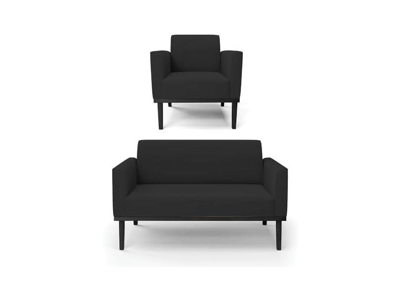Sofá Namoradeira com Poltrona Base de Madeira Fixa Preto Marisa Veludo Preto D03 - D'Rossi