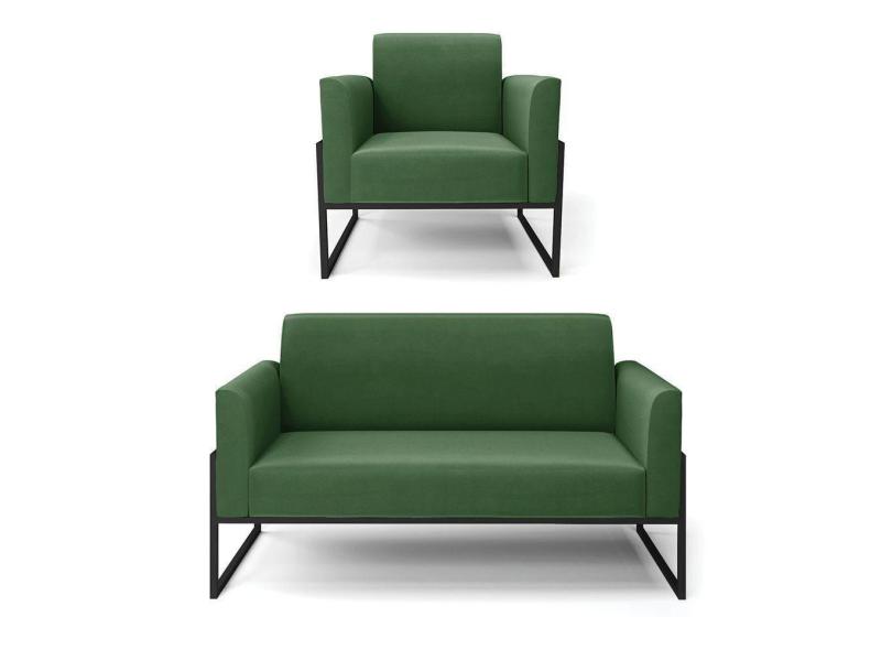 Sofá Namoradeira Com Poltrona Base Industrial Alta Preto Marisa Suede Verde D03 - D\`rossi