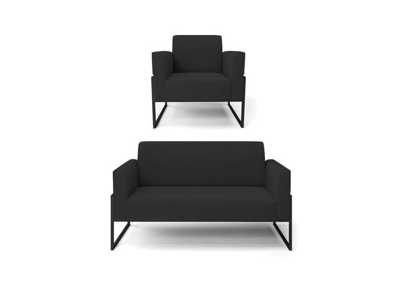 Sofá Namoradeira com Poltrona Base Industrial Alta Preto Marisa Veludo D03 - D'Rossi