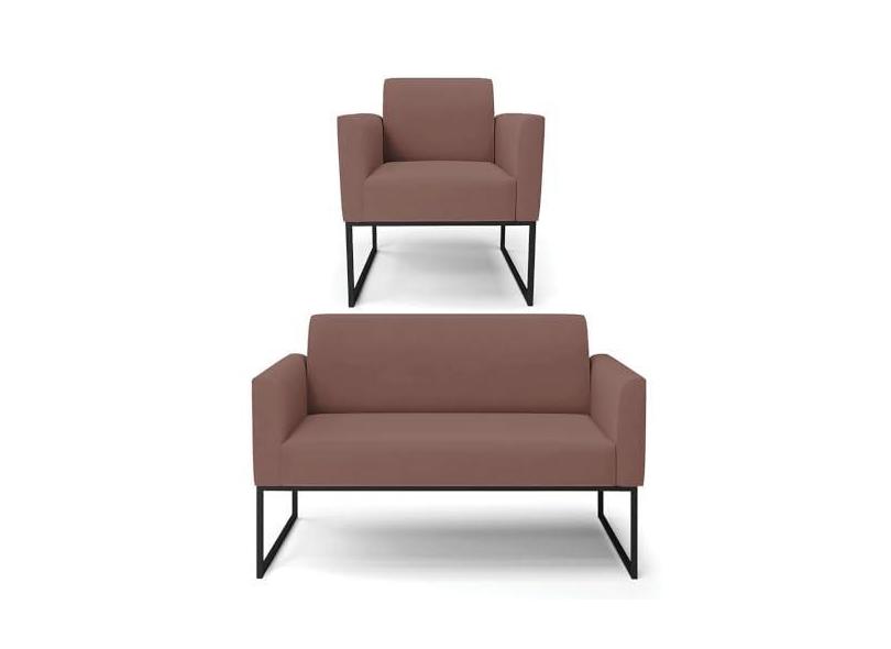 Sofá Namoradeira com Poltrona Base Industrial Preto Marisa Veludo Rosê D03 - D'Rossi