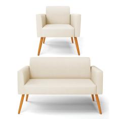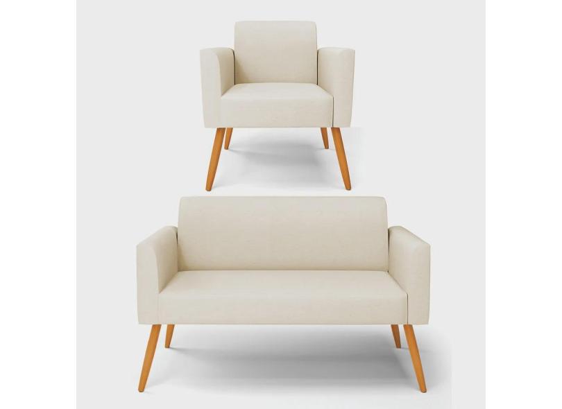 Sofá Namoradeira com Poltrona Pés Palito Castanho Marisa Linho Bege A19 D03 - D'Rossi