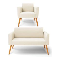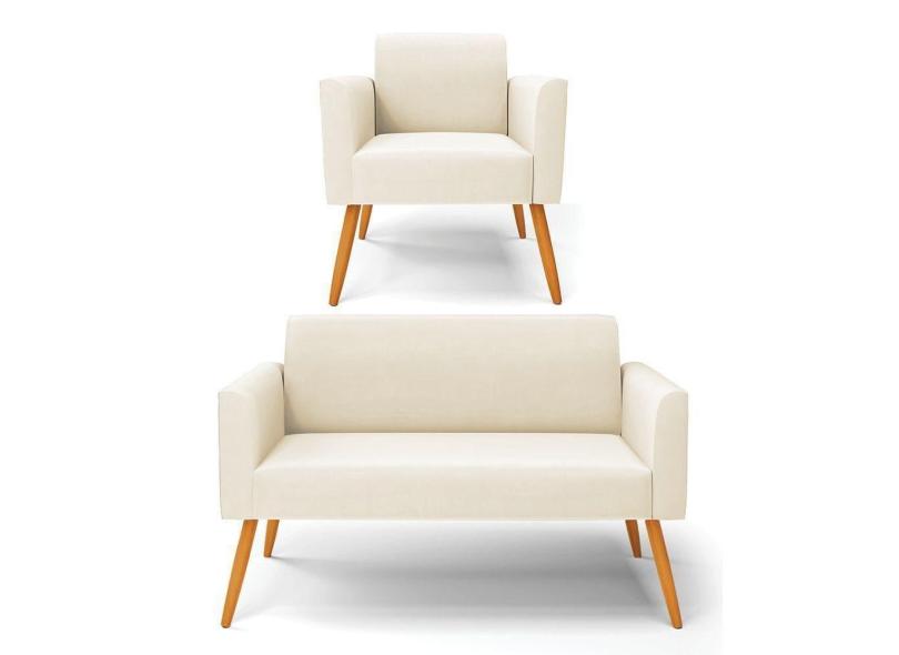 Sofá Namoradeira Com Poltrona Pés Palito Castanho Marisa Veludo D03 - D\`rossi Cor Bege