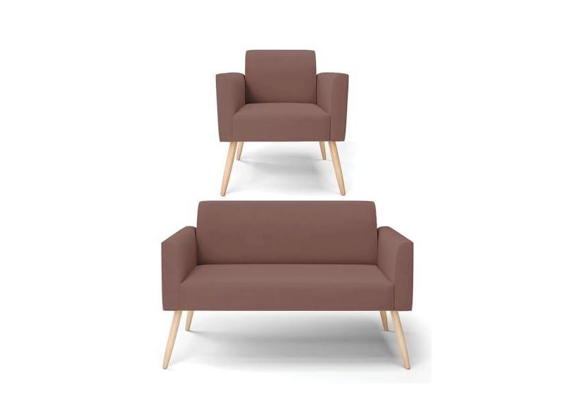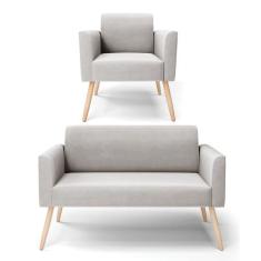 Sofá Namoradeira com Poltrona Pés Palito Natural Marisa Veludo D03 - D'Rossi