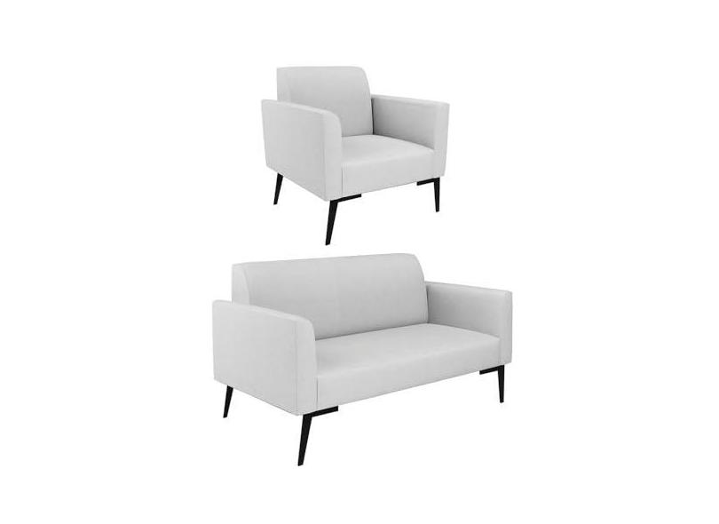 Sofá Namoradeira com Poltrona Pés Villach Marisa Linho Cinza A05 D03 - D'Rossi