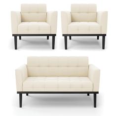Sofá Namoradeira E 2 Poltronas Base De Madeira Preto Elisa Veludo D03 - D'rossi Cor Preto