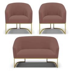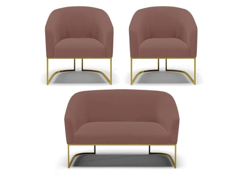 O menor preço encontrado no Brasil para Sofá Namoradeira E 2 Poltronas Base Industrial Dourado Stella Veludo D03 - D`rossi Cor Rose atualmente é R$ 2.316,96.