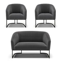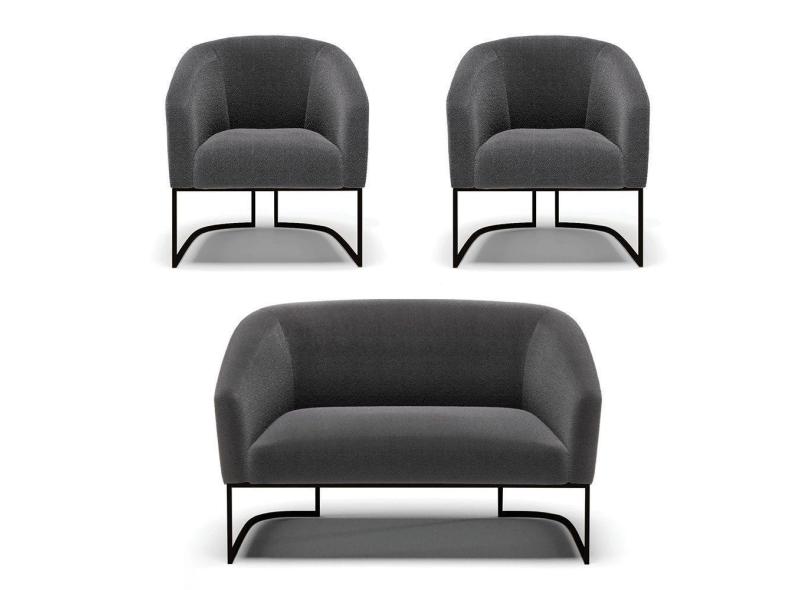 Sofá Namoradeira E 2 Poltronas Base Industrial Preto Stella Bouclê D03 - D'rossi Cor Grafite