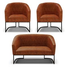 Sofá Namoradeira E 2 Poltronas Base Industrial Preto Stella Corano D03 - D'rossi Cor Nozes