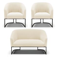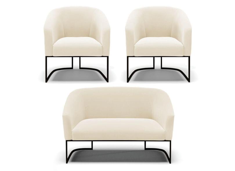 Sofá Namoradeira E 2 Poltronas Base Industrial Preto Stella Veludo D03 - D'rossi Cor Bege