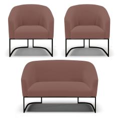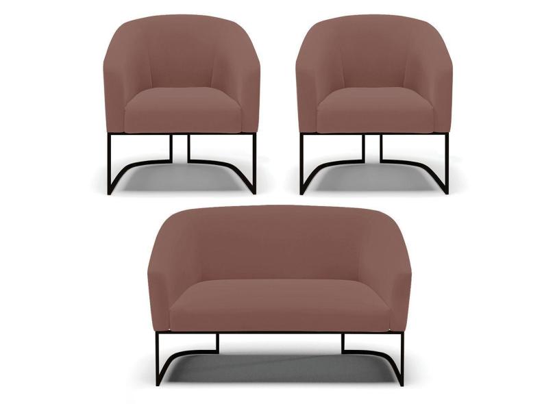Sofá Namoradeira E 2 Poltronas Base Industrial Preto Stella Veludo D03 - D'rossi Cor Rose