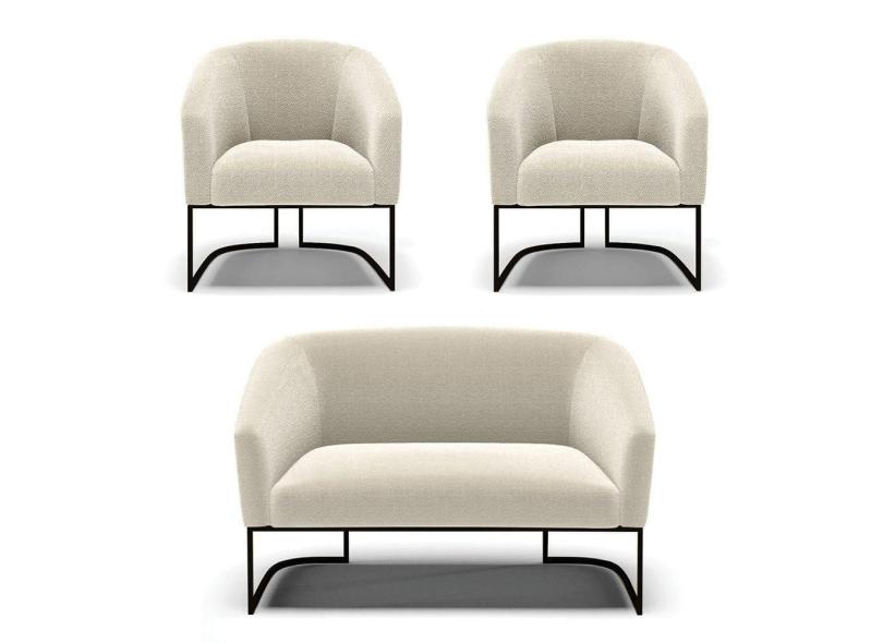 Sofá Namoradeira E 2 Poltronas Industrial Pto Stella Bouclê D03 - D`rossi Cor Verde