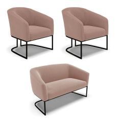 Sofá Namoradeira E 2 Poltronas Industrial Pto Stella Bouclê Rosê D03 - D`rossi