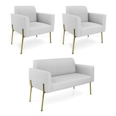 O menor preço encontrado no Brasil para Sofá Namoradeira e 2 Poltronas Pé de Ferro Dourado Marisa Linho D03 - D'Rossi atualmente é R$ 1.697,36.