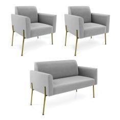 O menor preço encontrado no Brasil para Sofá Namoradeira e 2 Poltronas Pé de Ferro Dourado Marisa Suede Cinza D03 - D`Rossi atualmente é R$ 1.915,90.
