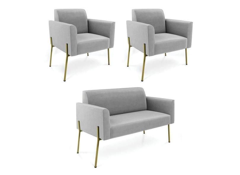 O menor preço encontrado no Brasil para Sofá Namoradeira E 2 Poltronas Pé De Ferro Dourado Marisa Suede D03 Cinza atualmente é R$ 1.685,99.
