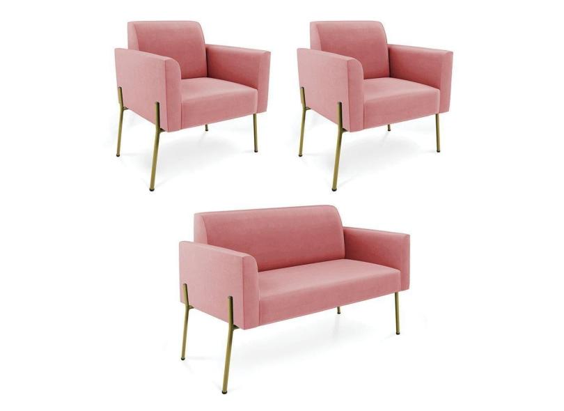 O menor preço encontrado no Brasil para Sofá Namoradeira E 2 Poltronas Pé De Ferro Dourado Marisa Suede D03 Rose atualmente é R$ 1.685,99.
