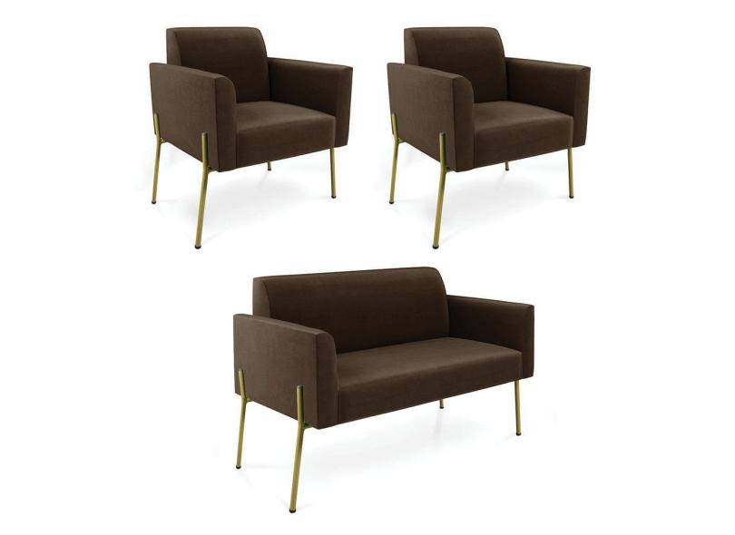 O menor preço encontrado no Brasil para Sofá Namoradeira e 2 Poltronas Pé de Ferro Dourado Marisa Suede Marrom D03 - D`Rossi atualmente é R$ 1.915,90.