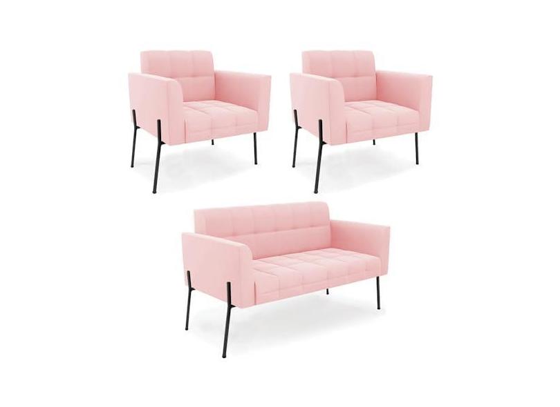 O menor preço encontrado no Brasil para Sofá Namoradeira e 2 Poltronas Pé de Ferro Preto Elisa Suede Rosa Bebê D03 - D'Rossi atualmente é R$ 3.431,61.