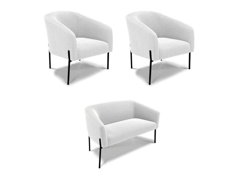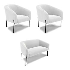 Sofá Namoradeira E 2 Poltronas Pé Ferro Pto Stella Bouclê Off Wte D03 - D`rossi