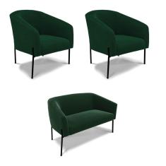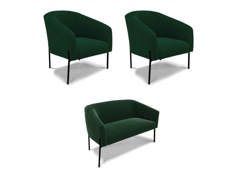 Sofá Namoradeira E 2 Poltronas Pé Ferro Pto Stella Bouclê Verde D03 - D`rossi