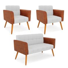 O menor preço encontrado no Brasil para Sofá Namoradeira E 2 Poltronas Pés Palito Castanho Elisa Nozes-linho Cinza A05 D03 - D'rossi atualmente é R$ 1.710,12.