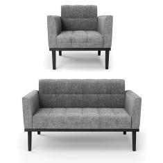 O menor preço encontrado no Brasil para Sofá Namoradeira E Poltrona Base De Madeira Preto Elisa Linho Grafite A26 D03 - D'rossi atualmente é R$ 1.398,16.