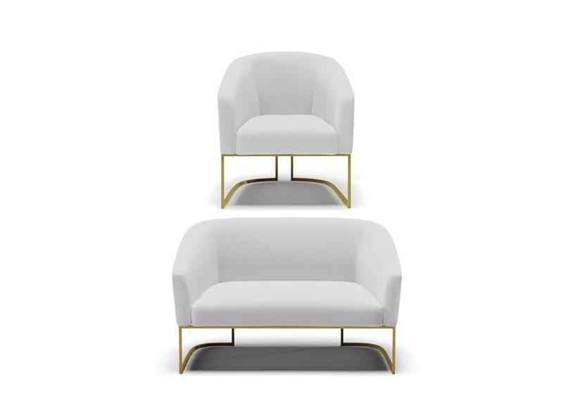 O menor preço encontrado no Brasil para Sofá Namoradeira e Poltrona Base Industrial Dourado Stella Linho Cinza A05 D03 - D'Rossi atualmente é R$ 1.444,92.