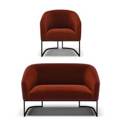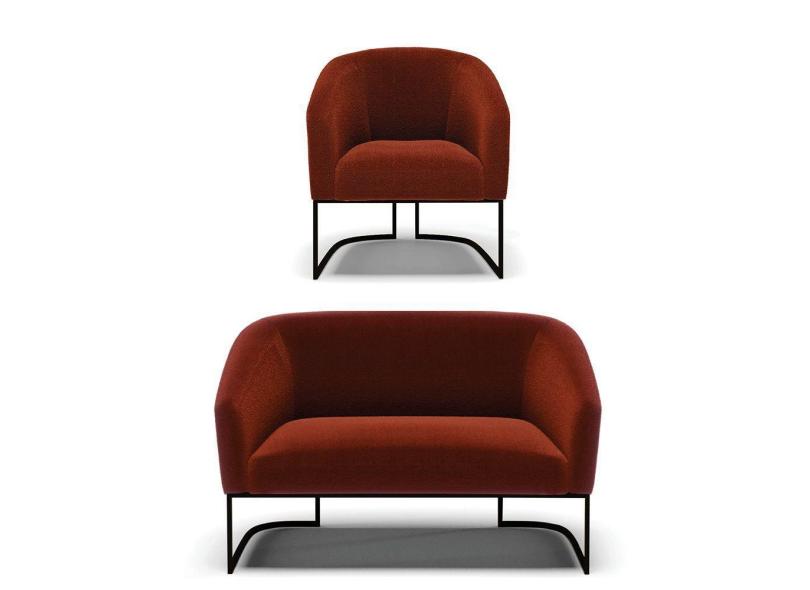 Sofá Namoradeira E Poltrona Base Industrial Preto Stella Bouclê D03 - D'rossi Cor Terra