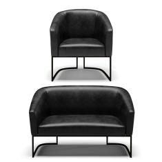 Sofá Namoradeira E Poltrona Base Industrial Preto Stella Corano D03 - D'rossi Cor Preto