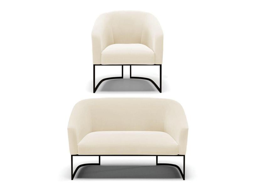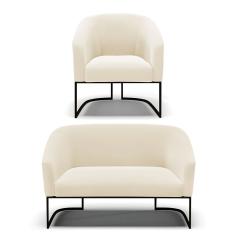 Sofá Namoradeira E Poltrona Base Industrial Preto Stella Veludo D03 - D'rossi Cor Bege