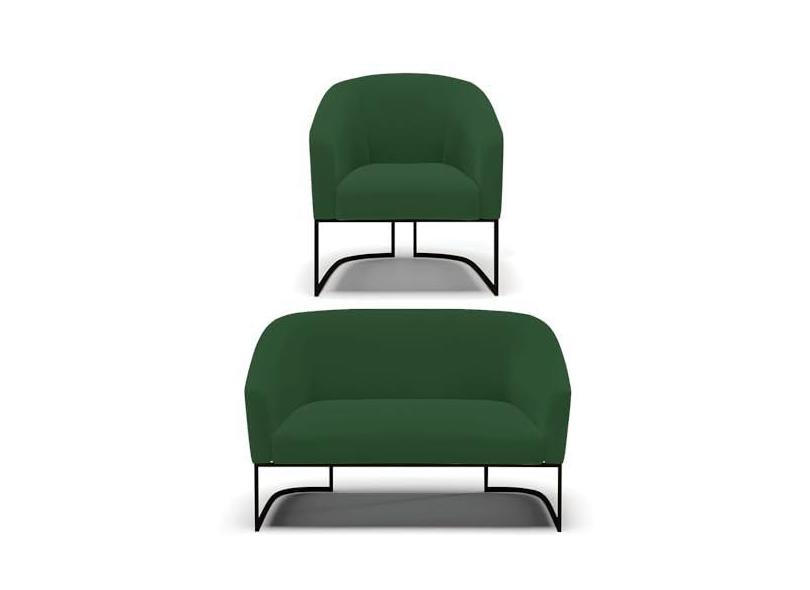 Sofá Namoradeira e Poltrona Base Industrial Preto Stella Veludo Verde D03 - D'Rossi