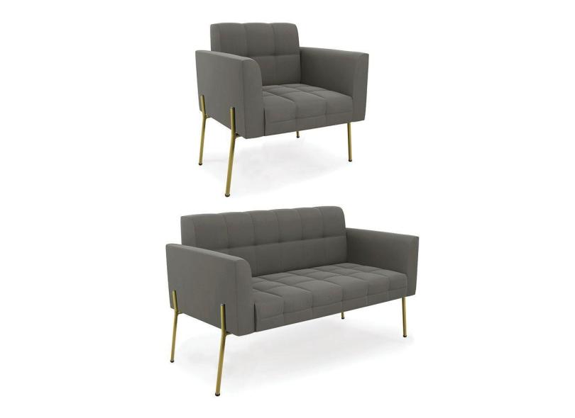 Sofá Namoradeira E Poltrona Pé De Ferro Dourado Elisa Suede D03 - D'rossi Cor Grafite